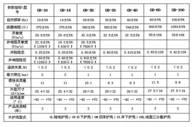 GD-XX系列常規地震檢波器